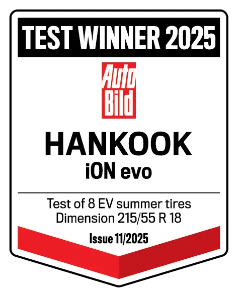 The Hankook iON evo, Hankook's premium summer tire for electric vehicles, was recently named the overall winner of the Auto Bild EV Summer Tire Test 2025. With an exceptional score of 1.1, the iON evo impressed with top performance in safety on both dry and wet roads, outstanding driving dynamics, high efficiency, and low rolling resistance — the ideal choice for EV drivers who want to combine performance with maximum range